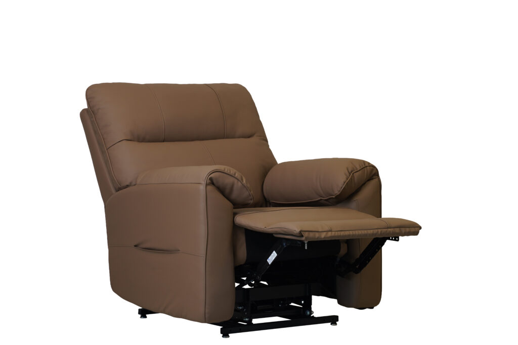 We’re very excited to present the updated Camberley in leather-tech, featuring a modern lifting riser design. Unlike traditional upholstery in cotton-linen fabrics, this version is easy to clean and maintain. Some customers worry that PU or leather can feel cold in winter, so we’ve added heating pads, providing extra warmth for the cold weather. At our stand, we’ll also be displaying matching 2-seater and 3-seater sofas that complement the lifting riser. For those looking for a full living room plan, we offer flexible options to create a complete set.